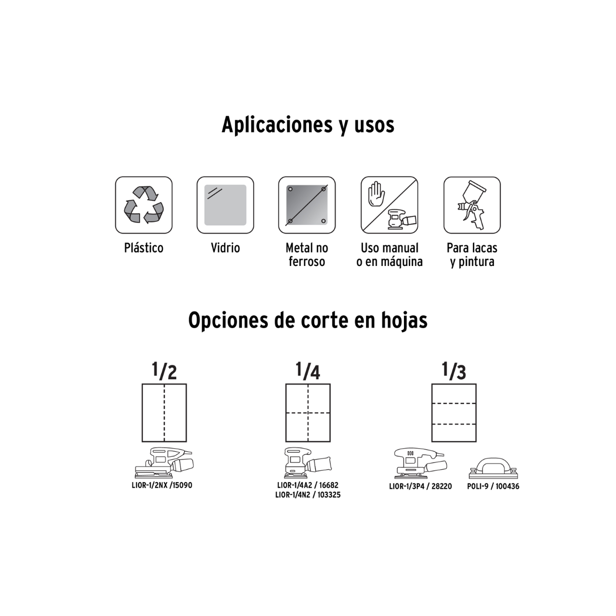 • Ideal para plástico, vidrio, metal no ferroso, lacas y